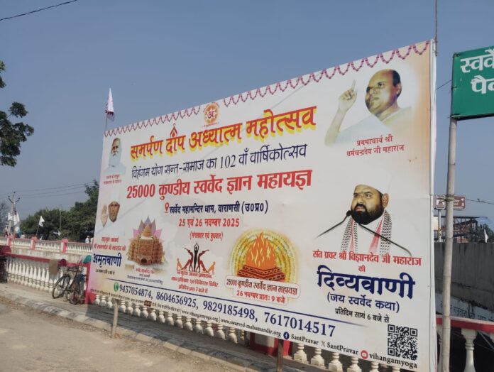उत्तर प्रदेश के वाराणसी स्थित स्वर्वेद महामन्दिर धाम, उमरहा में विहंगम योग सन्त-समाज का 102वाँ वार्षिकोत्सव एवं 25000 कुण्डीय स्वर्वेद ज्ञान महायज्ञ एक भव्य समर्पण दीप अध्यात्म महोत्सव के रूप में मनाया गया। यह दिव्य आयोजन 25 एवं 26 नवम्बर 2025 (मंगलवार एवं बुधवार) को संपन्न हुआ, जिसने लाखों श्रद्धालुओं को अध्यात्म की ओर आकर्षित किया।