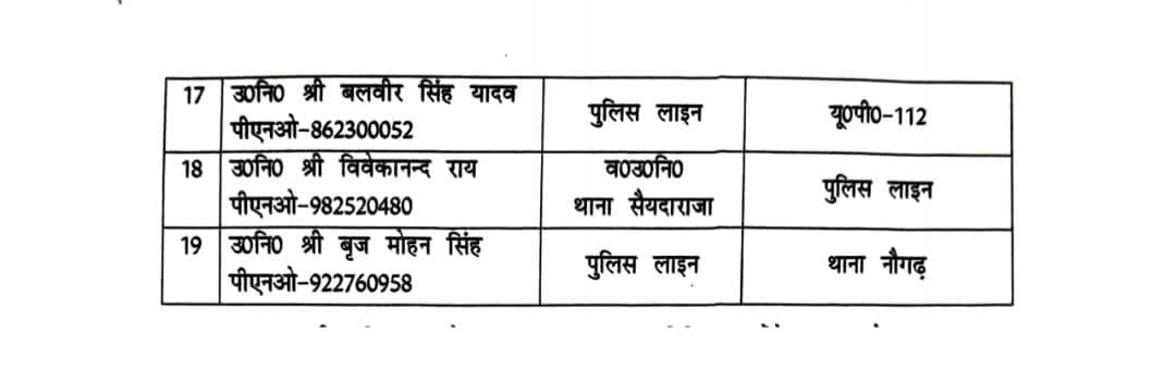 “चंदौली में पुलिस विभाग में बड़ा बदलाव: 19 निरीक्षक–उपनिरीक्षकों का तबादला, दरोगाओं को मिली थानों की नई जिम्मेदारी”