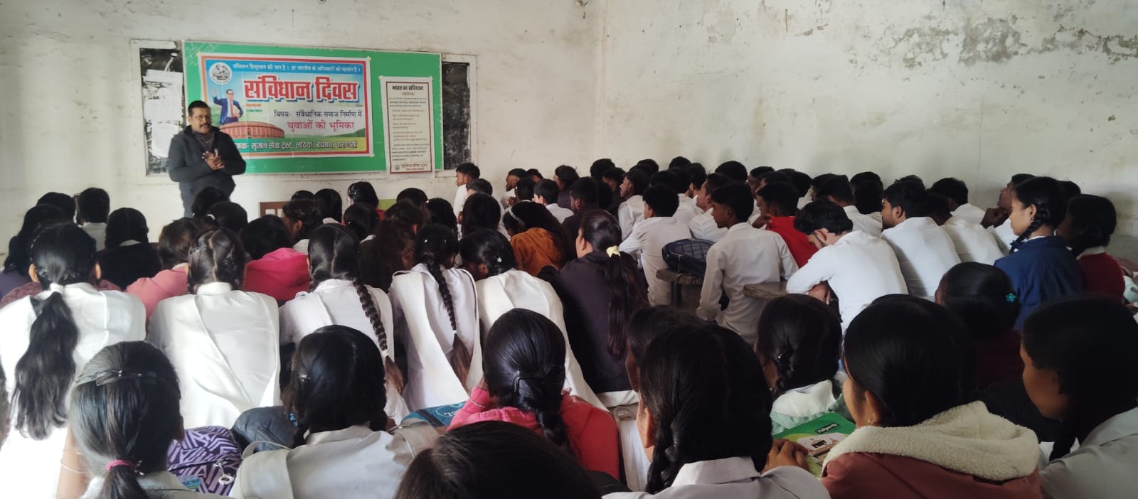 संविधान दिवस के अवसर पर पुरुषोत्तम जायसवाल इंटर कॉलेज करसड़ा और महामना मालवीय इंटर कालेज बच्छाव में छात्र-छात्राओं के साथ *सृजन सेवा ट्रस्ट* के सहयोग से *“संवैधानिक समाज निर्माण में युवाओं की भूमिका”* विषय पर जागरूकता कार्यक्रम का आयोजन किया गया।