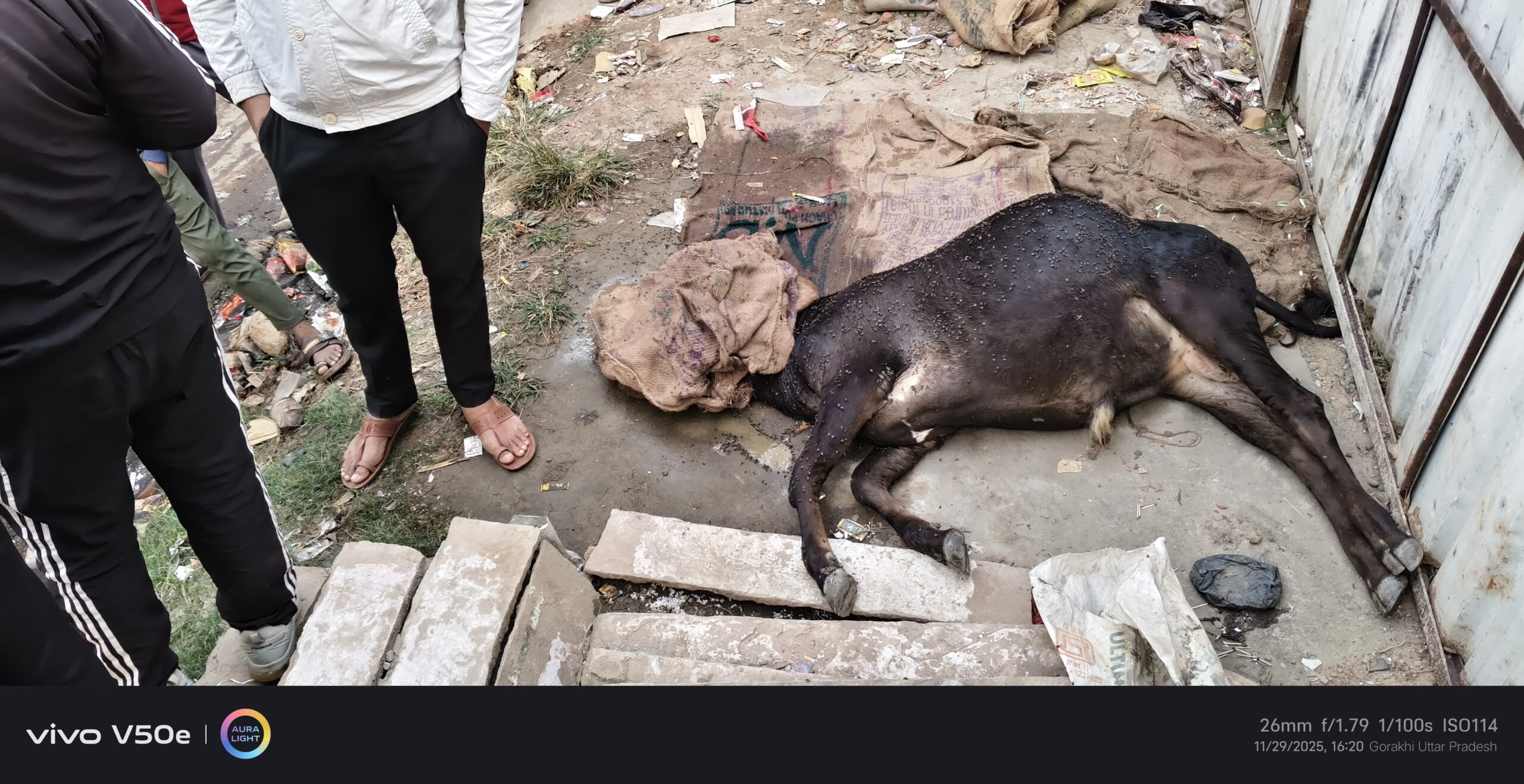 बबुरी मार्केट में छुट्टा गौवंश की अचानक मौत, खगवा बीमारी और पॉइजन की आशंका—प्रशासन जांच में जुटा