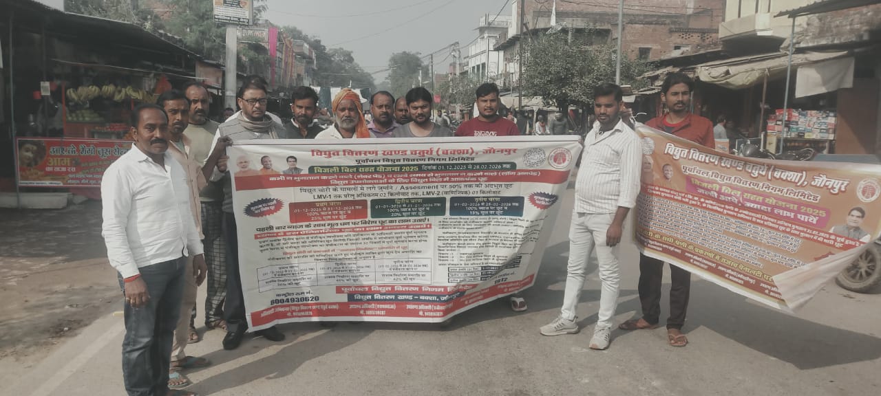जौनपुर, बक्शा। विद्युत उपभोक्ताओं को राहत प्रदान करने के उद्देश्य से बिजली बिल राहत योजना 2025-26 को 1 दिसंबर से लागू कर दिया गया है। इस योजना के तहत उपभोक्ताओं को लेट पेमेंट सरचार्ज पर 100 प्रतिशत तक की छूट मिलेगी। साथ ही, बिजली बिल के मूलधन में भी पहली बार 25 प्रतिशत तक की बड़ी राहत का प्रावधान किया गया है। योजना की जानकारी देने के लिए रविवार को शम्भूगंज बाजार में विद्युत वितरण खण्ड चतुर्थ, बक्शा द्वारा एक जागरूकता शिविर का आयोजन किया गया।योजना का लाभ उठाने के लिए उपभोक्ताओं को 2000 रुपये का एकमुश्त पंजीकरण शुल्क जमा करना होगा। इसके बाद, वे अपना बकाया बिल एकमुश्त या 500 रुपये और 750 रुपये की मासिक किस्तों में भुगतान कर सकेंगे। योजना में मूल बकाया पर तीन चरणों में छूट दी जाएगी: पहले चरण में 25 प्रतिशत, दूसरे चरण में 20 प्रतिशत, और तीसरे चरण में 15 प्रतिशत। पूरे भुगतान पर कोई ब्याज नहीं लगेगा। इसके अतिरिक्त, जिन उपभोक्ताओं का बिल सामान्य से अधिक आया है, उन्हें औसत बिल भरने की सुविधा भी प्रदान की जाएगी।यह योजना तीन चरणों में संचालित होगी। पहला चरण 1 दिसंबर से 31 दिसंबर 2025 तक चलेगा, जिसमें 25 प्रतिशत की छूट मिलेगी। दूसरा चरण 1 जनवरी से 31 जनवरी 2026 तक होगा, जिसमें 20 प्रतिशत की छूट प्रदान की जाएगी। तीसरा और अंतिम चरण 1 फरवरी से 28 फरवरी 2026 तक रहेगा, जिसमें 10 प्रतिशत की छूट का प्रावधान है।अधिशासी अभियंता बी.के. सिंह के निर्देश पर शम्भूगंज बाजार में आयोजित जागरूकता शिविर में मोहम्मद सलीम और विभागीय अधिकारियों ने योजना के लाभों और पंजीकरण प्रक्रिया की विस्तृत जानकारी दी। उन्होंने उपभोक्ताओं से इस महत्वपूर्ण राहत योजना का अधिकतम लाभ उठाने की अपील की।इस जागरूकता अभियान में विद्युत वितरण खण्ड चतुर्थ, बक्शा के जेई इंद्रजीत पाल, मोहन पांडेय, लाइनमैन बुलबुल, राकेश पाल सहित कई बाजारवासी, ग्रामीण और जनप्रतिनिधि उपस्थित रहे। उपभोक्ता अधिक जानकारी के लिए अपने नजदीकी विद्युत उपकेंद्र या कार्यालय से संपर्क कर सकते हैं।