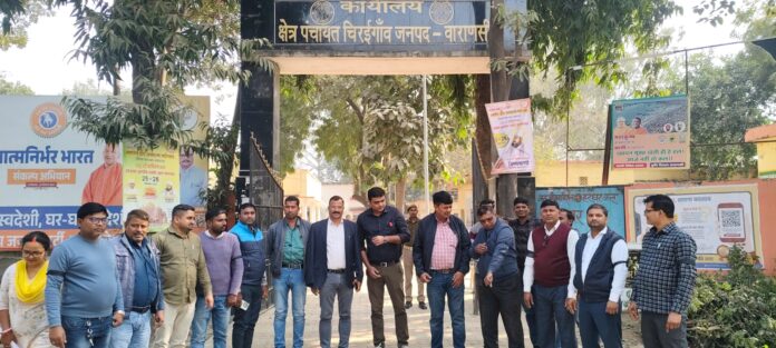 वाराणसी (चिरईगाँव ब्लॉक): चिरईगाँव ग्राम पंचायत अधिकारी एवं ग्राम विकास अधिकारी समन्वय समिति के नेतृत्व में सोमवार को ग्राम सचिवों ने अपनी ज्वलंत मांगों को लेकर प्रदेशव्यापी आंदोलन के समर्थन में जोरदार विरोध प्रदर्शन किया। इस दौरान, सदर ब्लॉक पर एकत्र हुए सचिवों ने अपनी बाह पर काली पट्टी बांधकर जमकर नारेबाजी की, जो शासन द्वारा थोपी जा रही ऑनलाइन हाजिरी प्रणाली और अत्यधिक गैर-विभागीय कार्यभार के खिलाफ उनके गहरे रोष को दर्शाता है।