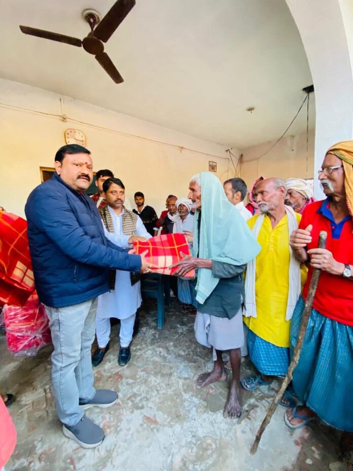 वाराणसी (चिरईगाँव): क्षेत्र में अचानक बढ़ी ठंड के प्रकोप को देखते हुए, वाराणसी जिले के चिरईगाँव ब्लॉक अंतर्गत ग्राम सभा खरगीपुर में एक बड़ा सामाजिक कार्यक्रम आयोजित किया गया। सर्वेद मंदिर द्वारा आयोजित यह कंबल वितरण समारोह पूर्व ब्लाक प्रमुख सुधीर सिंह पप्पू के आवास पर संपन्न हुआ।