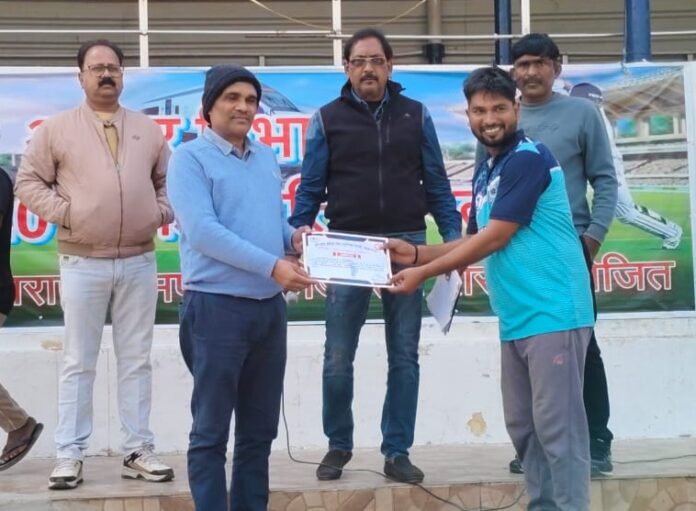 वाराणसी 11 दिसम्बर,2025; मंडल रेल प्रबन्धक वाराणसी श्री आशीष जैन के निर्देशन में एवं मंडल क्रीडा अधिकारी श्री बालेन्द्र पॉल के नेतृत्व में पूर्वोत्तर रेलवे लहरतारा स्थित रेलवे स्टेडियम में चल रही वाराणसी मंडल की अंतर विभागीय टी-20 क्रिकेट प्रतियोगिता 2025 का 13 वाँ लीग मैच आज 11 दिसम्बर 2025 वृहस्पतिवार को विद्युत टीआरडी और विद्युत सामान्य के बीच खेला गया । विद्युत टीआरडी की टीम ने टॉस जीतकर पहले बैटिंग करते हुए 20 ओवर में 157 रन बनाए । टीआरडी की तरफ से भानु प्रताप ने 35 बाल पर पांच चौके और दो छक्के की मदद से 50 रन, रजनीकांत ने 9 बाल पर एक चौके और दो छक्के की मदद से 20 रन, आनंद ने 15 बाल पर तीन चौके की मदद से 19 रन तथा राजकुमार ने 11 बाल पर दो चौके और छक्के की मदद से 17 रन बनाए । विद्युत सामान्य की तरफ से करन ने चार ओवर में 41 रन देकर तीन विकेट, अनिल यादव ने चार ओवर में 17 रन देकर दो विकेट लिए, नीरज और रोशन को एक-एक विकेट प्राप्त हुआ । 158 रनों के लक्ष्य का पीछा करती हुई विद्युत सामान्य की पूरी टीम 89 रन पर आंल आउट हो गई । विद्युत टीआरडी के अनिल मिश्रा ने चार ओवर में आठ रन देकर 5 विकेट लिये ।अनिल मिश्रा के अतिरिक्त मिथुन, सुरेंद्र, वरुण रजनीकांत, और भानु प्रताप को एक-एक विकेट प्राप्त हुआ । विद्युत सामान्य की तरफ से संजय साहू ने 26 बाल पर दो चौके और दो छक्के की मदद से 28 रन और भगवान यादव ने 15 बाल पर एक चौक और एक छक्के की मदद से 15 रन बनाए । विद्युत टीआरडी के अनिल मिश्रा को मैन ऑफ द मैच का पुरस्कार सहायक विद्युत इंजीनियर टीआरडी वीरेंद्र भारती के द्वारा दिया गया ।