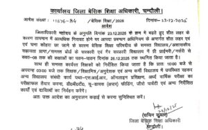 चंदौली। जनपद में लगातार बढ़ रही शीत लहर और तापमान में अत्यधिक गिरावट को देखते हुए जिला प्रशासन ने बड़ा फैसला लिया है। जिलाधिकारी चंद्र मोहन गर्ग के आदेश पर आपदा प्रबंधन अधिनियम के तहत जिले के सभी स्कूलों में कक्षा 8 तक का पठन-पाठन 26 दिसंबर 2025 तक स्थगित कर दिया गया है।