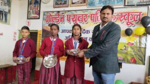 RS64 न्यूज के राकेश भारती गोल्डेन फ्यूचर पब्लिक स्कूल के प्रबंधक श्री राजदेव मौर्य, प्रधानाचार्य श्री बृज बिहारी लाल , और विद्यालय के अध्यापक गण बेचू राम, श्री नरेंद्र सिंह, धीरेंद्र सिंह, दीपक मौर्य, अमित चौरसिया, राजेंद्र प्रसाद, अश्विन मौर्य, श्रीमती रीता देवी, श्रीमती मीरा , वेदिका केसरी, ज्योति कुमारी, राखी पटेल, अंतिमा यादव, नीतू गुप्ता, रौनक यादव, ज्योति कुमारी ,उजाला सिंह पूनम मोर्या, प्रीति मोर्य ,काजल मौर्या आदि लोग उपस्थित रहे।