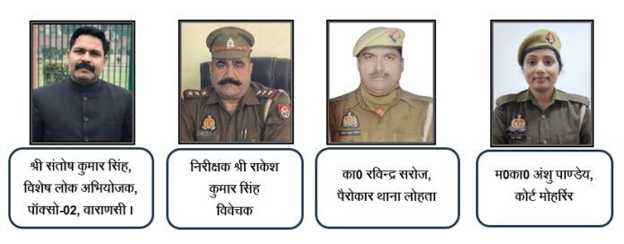 प्रदेश भर में चलाए जा रहे अभियान “ऑपरेशन कनविक्शन” के अन्तर्गत पुलिस आयुक्त कमिश्नरेट वाराणसी श्री मोहित अग्रवाल द्वारा निरंतर समीक्षा और मार्गदर्शन दिया जा रहा है । कमिश्नरेट वाराणसी पुलिस द्वारा गुणवत्ता पूर्ण विवेचना व लोक अभियोजक के संयुक्त प्रयास से थाना लोहता में पंजीकृत मु0अ0सं0 0001/2019 धारा 302, 201, 394, 411 भादवि में आज दिनांक 07.01.2026 को मा0 न्यायालय अपर जिला एवं सत्र न्यायाधीश/विशेष न्यायाधीश (पॉक्सो एक्ट), न्यायालय संख्या-02, वाराणसी द्वारा साक्ष्यों के आधार पर 02 अपचारीगण को 20 वर्ष सश्रम कारावास एवं 18-18 हजार रुपये के अर्थदण्ड से दण्डित किया गया। अभियोग उपरोक्त में अभियुक्त को सजा दिलाने में कमिश्नरेट वाराणसी के निम्नलिखित अधिकारियों/कर्मचारियों की महत्वपूर्ण भूमिका रही ।