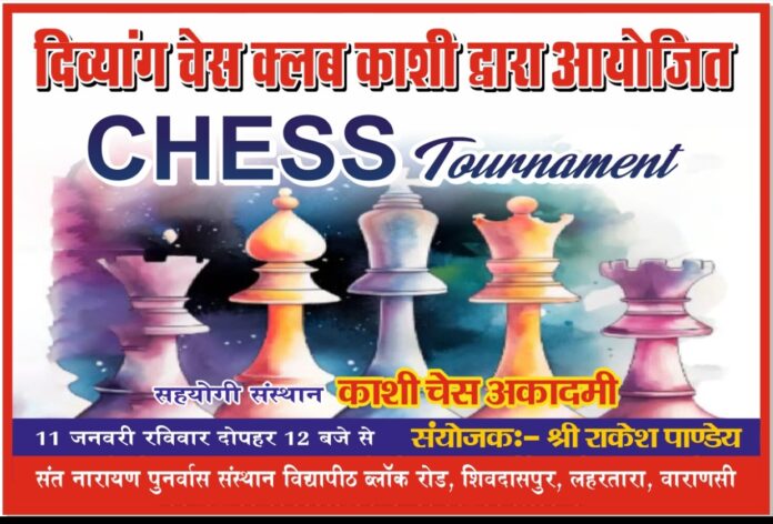 काशी में पहली बार दिव्यांग चेस क्लब काशी द्वारा काशी चेस अकादमी के सहयोग से 11 जनवरी (रविवार) दिन में 12:00 बजे से संत नारायण पुनर्वास संस्थान विद्यापीठ ब्लॉक रोड, शिव