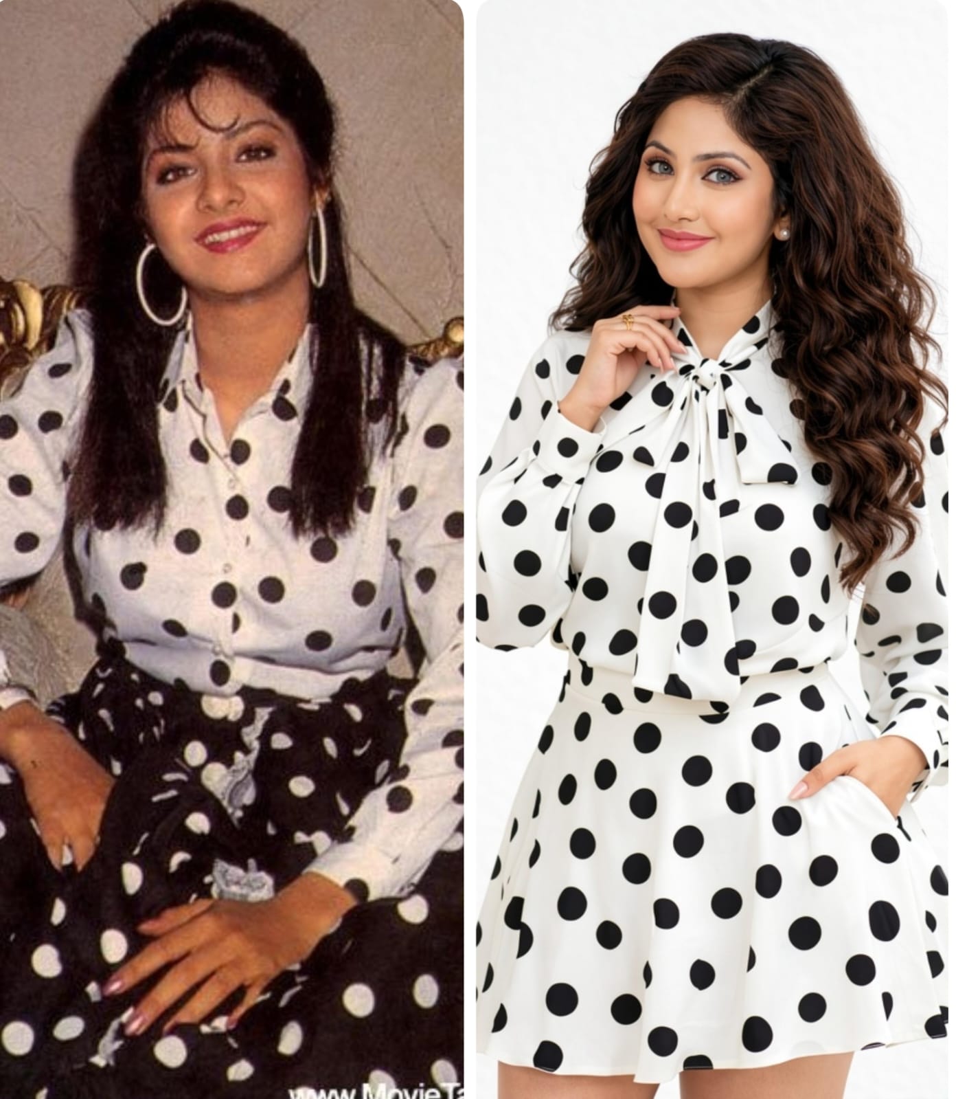 90 के दशक की मशहूर अदाकारा दिव्या भारती अपनी मासूमियत, चुलबुली अदाओं और दमदार अभिनय के लिए जानी जाती थीं। आज भी उनके प्रशंसक उनकी फिल्मों और मुस्कान को याद करते हैं। ऐसे में जब नव्याश्री की तस्वीरें सामने आईं, तो सोशल मीडिया यूज़र्स ने उन्हें दिव्या भारती की हमशक्ल बताना शुरू कर दिया।