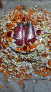 चोरी: माता के चरणों से चांदी की पादुका गायब मिली।
