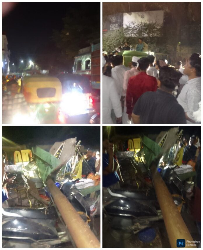 रोड पर लगे स्ट्रीट लाइट का पोल गिरा स्कूटी सहित ठेला पर