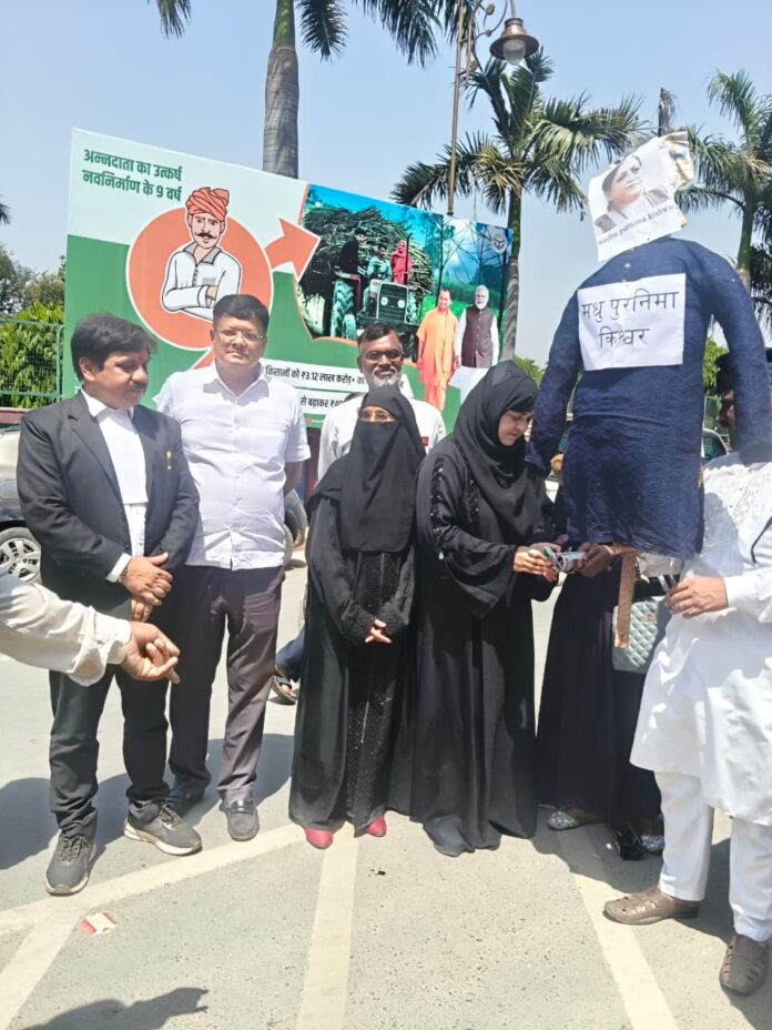 प्रदर्शन के दौरान महिलाओं ने सामाजिक टिप्पणीकार मधु पूर्णिमा किश्वर के विरुद्ध विरोध स्वरूप उनका पुतला दहन किया और प्रशासन से इस प्रकरण में सख्त कार्रवाई की मांग की। प्रदर्शनकारियों का कहना था कि इस प्रकार की भ्रामक एवं भड़काऊ सामग्री समाज की एकता, सद्भाव और भाईचारे को गंभीर रूप से प्रभावित करती है, जिसे किसी भी परिस्थिति में स्वीकार नहीं किया जा सकता।