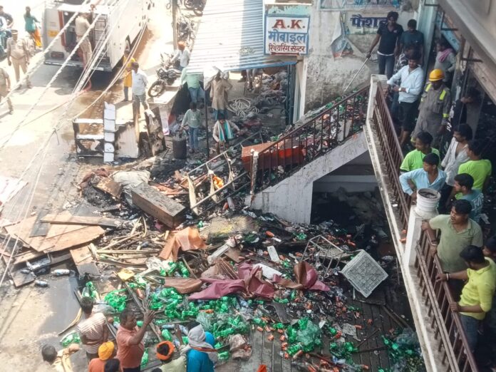 राजातालाब में कपड़े की दुकान व कोल्ड ड्रिंक गोदाम में बिजली की शार्ट सर्किट लगी भीषण आग, लाखों का सामान जलकर हुआ नष्ट